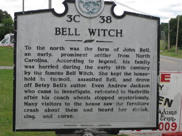 The story of the Bell Witch is well-known, in fact, there is a historical marker in Adams, Tennessee, near what was once the farm of John Bell, the man around whom the hauntings centered. Photo courtesy: USA Today https://thedmonline.com/professor-bell-witch-lecture/