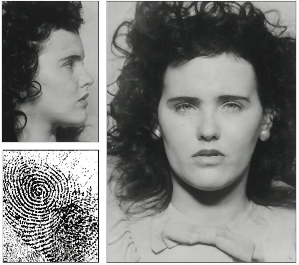 This is Elizabeth Short’s mug shot and fingerprints. She had been arrested in 1943 by the Santa Barbara police for underage drinking. On January 15, 1947, a woman walking with her 3 year old daughter in a Los Angeles neighborhood came upon a gruesome sight, the mutilated body of a young woman sliced in half at the waist. It was through the police fingerprints that the FBI identified the 22 year old dead woman as Elizabeth Short. https://www.fbi.gov/history/famous-cases/the-black-dahlia