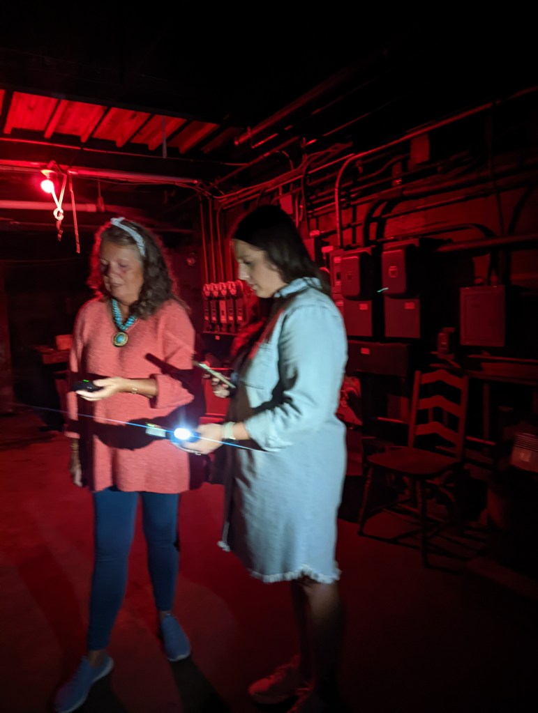 Conducting a paranormal investigation in the tunnel under Gilley’s Butcher Shop.